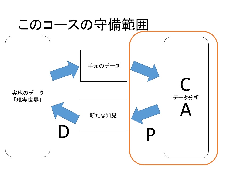 データを分析するプロセスにおける、このコースの守備範囲は次のようです。