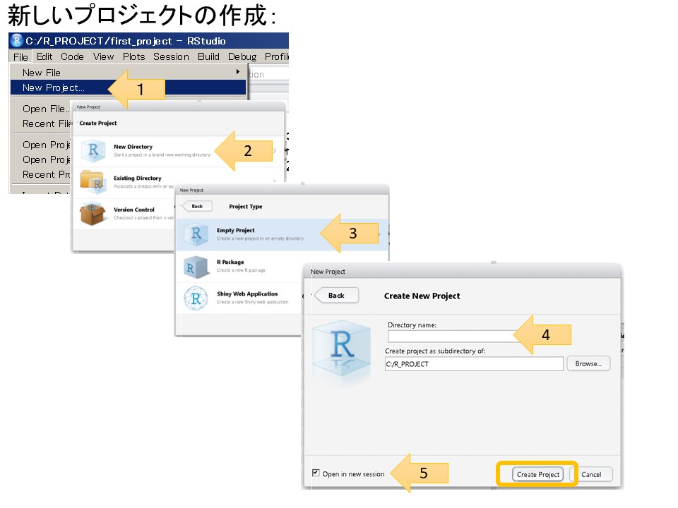 それでは、プロジェクトを実際のRStudioの画面で作成していきましょう。