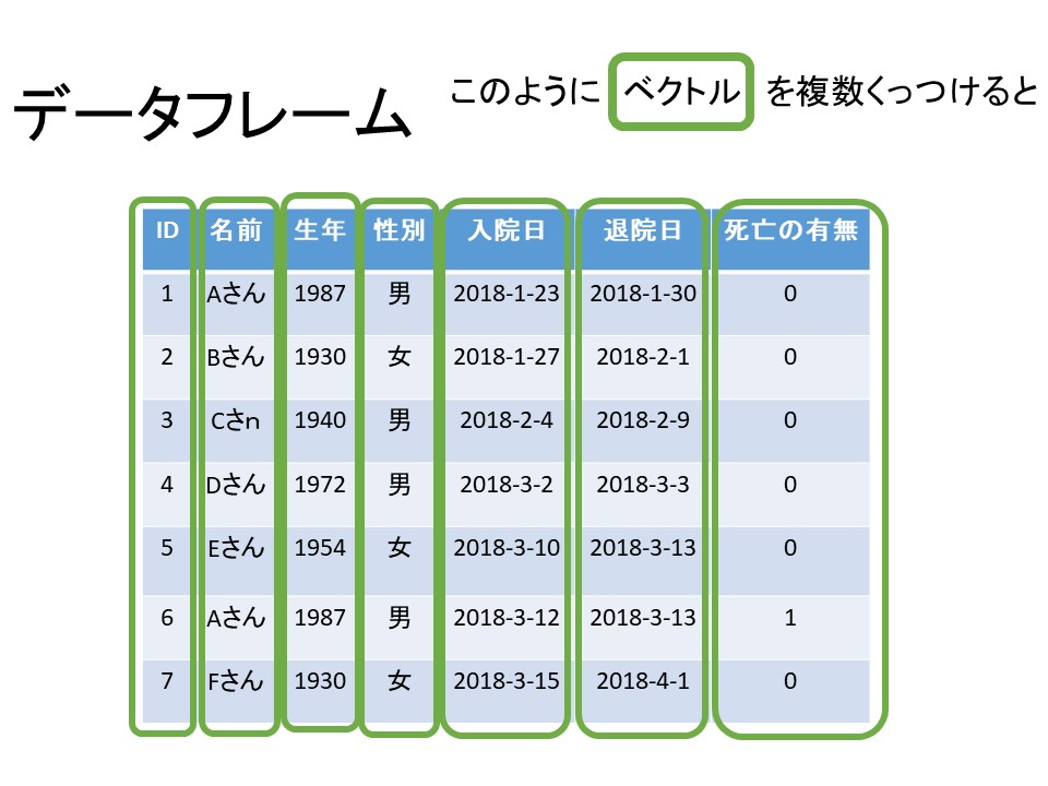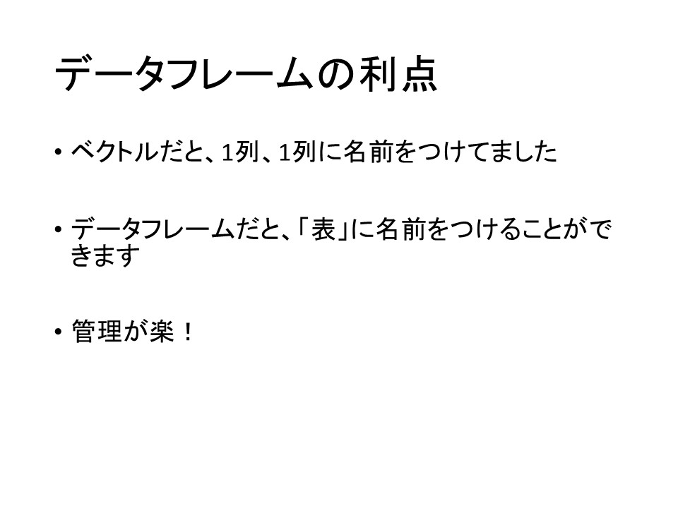 データフレーム(スライドのデータフレームを作成してみよう)(L28)