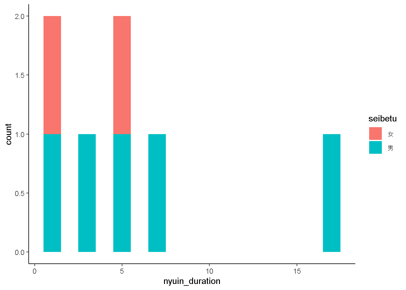 mapping = aes(x = nyuin_duration)) +